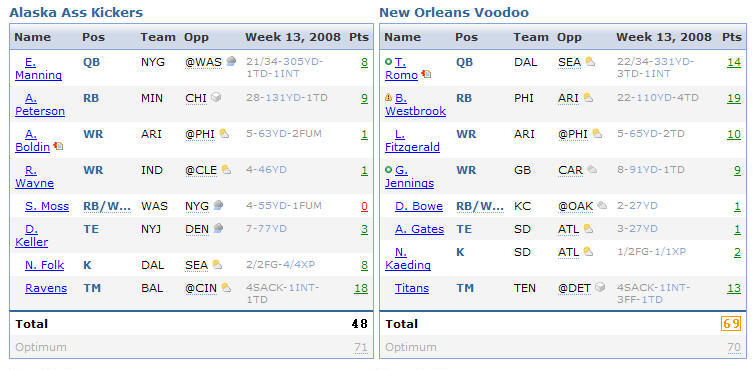 HEAD TO HEAD RESULTS: