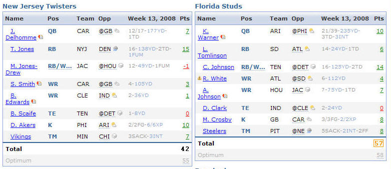 HEAD TO HEAD RESULTS: